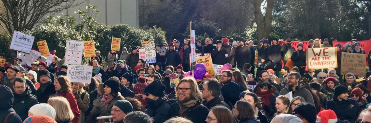 Industrial action is taking place at 64 Universities across the UK. Academics and supporting staff are defending their right to a fair pension against a backdrop of the marketisation of Higher Education.